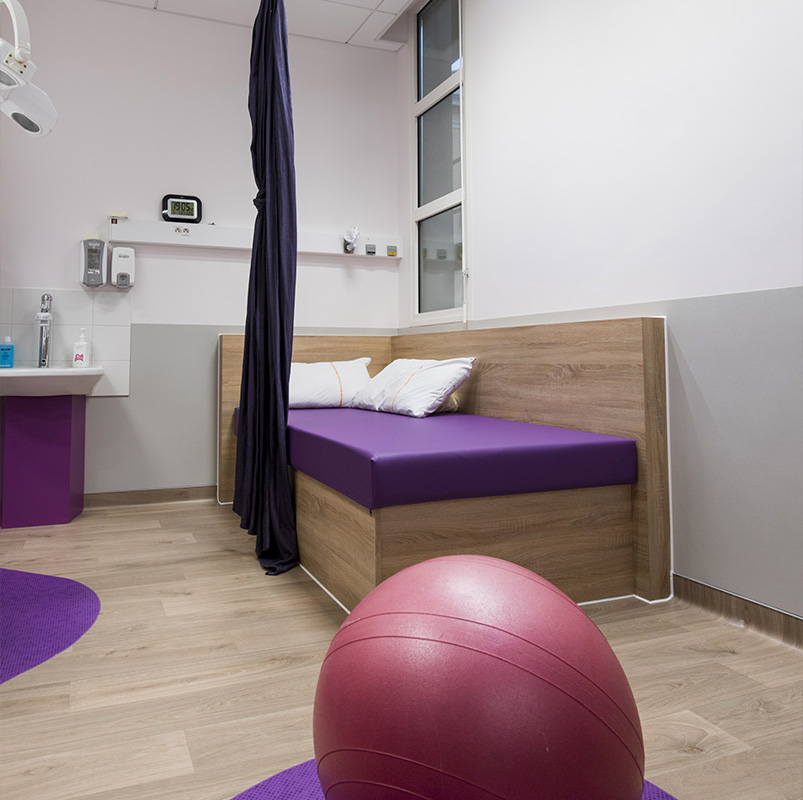 Pour votre accouchement, nous disposons de 4 salles de naissance équipées pour un accouchement physiologique (ballon, monitoring sans fil etc…), dont une salle équipée d’une baignoire, d’une banquette, des lianes de suspension etc…. La péridurale ambulatoire peut vous être aussi proposée. La maternité dispose également de deux blocs opératoires.