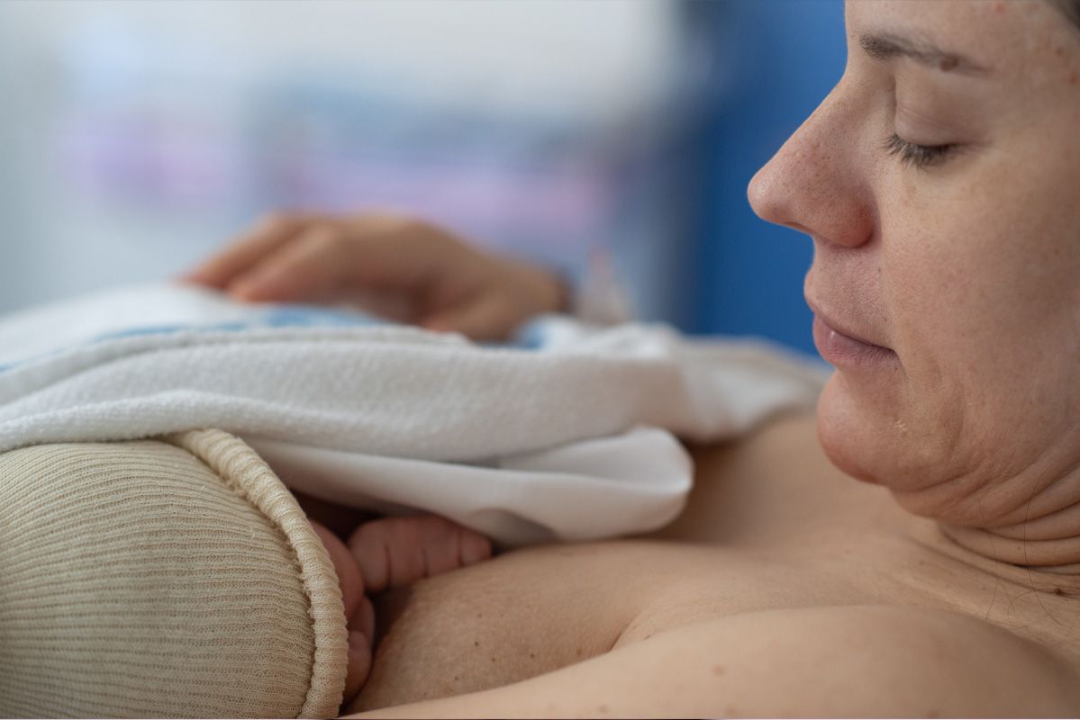 Le peau à peau permet de maintenir la température corporelle de votre bébé et favorise le début de la lactation. Dans certains cas (urgence, fatigue etc…), le peau à peau pourra être proposé au co-parent, tout en restant proche de vous.