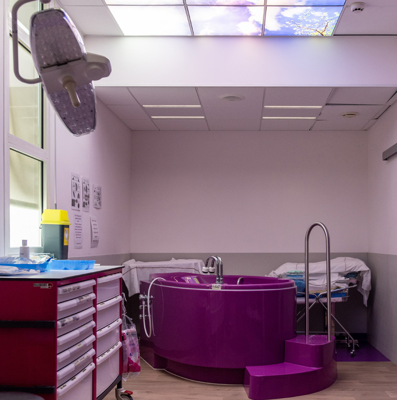 Les 4 salles de naissance sont équipées pour un accouchement physiologique, l’une d’entre elles disposant d’une baignoire de relaxation et d’une banquette.